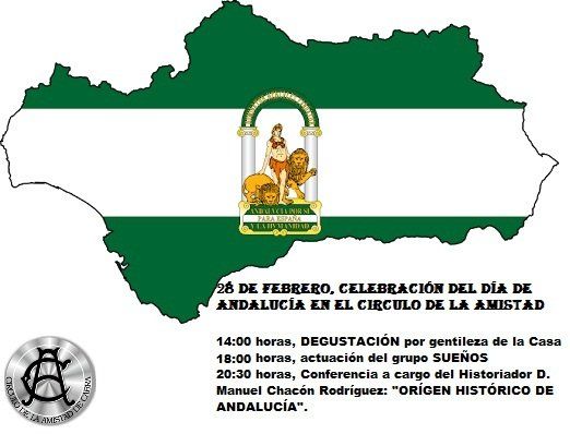 Éste próximo Viernes 28 de Febrero 2020 a partir de las 14:00 h., celebraremos el Día de Andalucía en el Círculo de la Amistad, con tal motivo invitaremos a los socios a una degustación.
